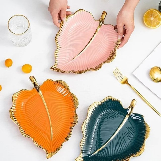 11 Inch Leaf Shape Ceramic Plate – European Style Phnom Penh Fruit Platter