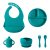 The set features contrasting colors that are sure to engage your baby while also providing the practical functionality parents need. The suction bowl stays firmly in place on any surface, reducing the risk of messy spills and making it ideal for babies learning to eat independently. The adjustable bib, leakproof baby cup, and easy-to-grip spoon and fork ensure that your little one has everything they need for a complete, stress-free mealtime experience.