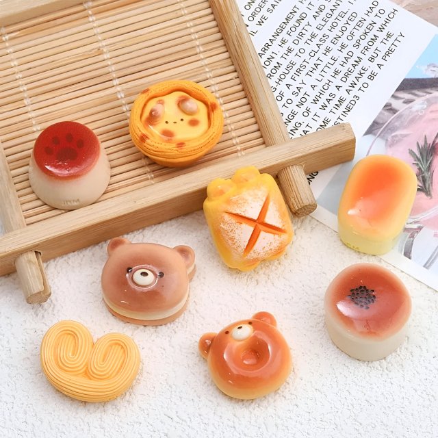 8pcs Cute Cartoon Bear Bread Resin Fridge Magnets – Adorable Kitchen Decor Set