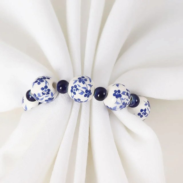 Creative Hand-Painted Blue and White Bead Napkin Rings – Set of 6 or 12