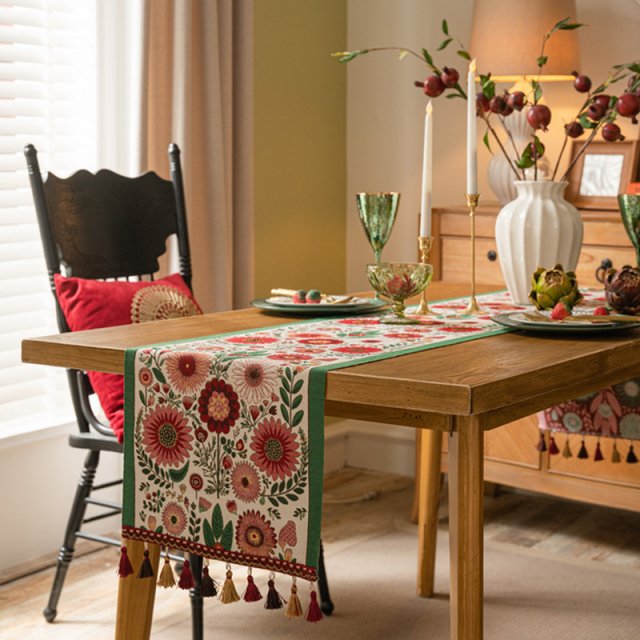 Transform your dining experience with the Retro Sunflower Jacquard Table Runner — a perfect blend of classic craftsmanship and modern charm. Designed with intricate sunflower embroidery and elegant tassel accents, this table runner instantly adds a warm, ethnic touch to any table setting. Whether you’re hosting a festive dinner, a cozy family meal, or simply decorating for the season, it’s the ideal piece to elevate your kitchen or dining room décor.