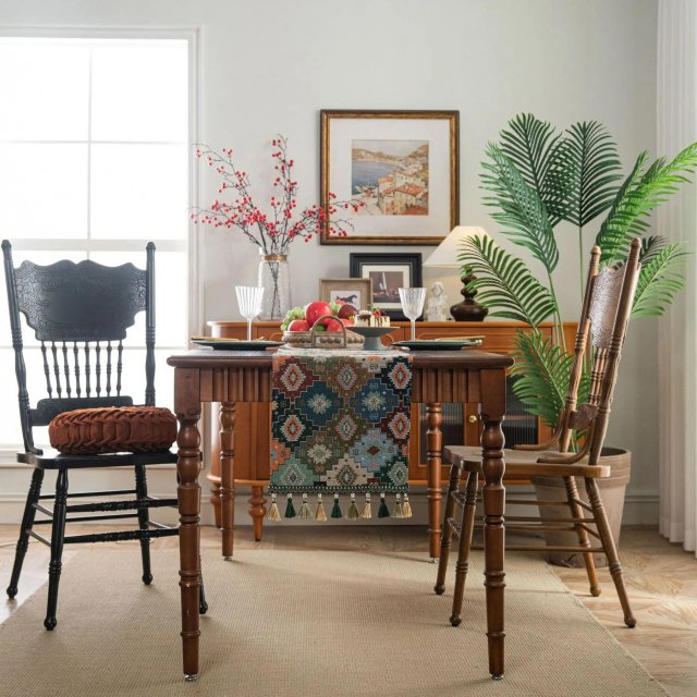 This table runner is more than just a decorative piece—it’s an essential addition to your dining space. Whether you’re hosting a family dinner, a holiday feast, or a casual gathering, the Vintage Geometric Jacquard Table Runner brings an air of sophistication and warmth to your table. The carefully crafted jacquard weave and tassel accents create a timeless look that complements both traditional and modern dining settings. Perfect for adding personality to your dining room, it works wonderfully for various occasions such as birthdays, anniversaries, or even casual everyday meals.